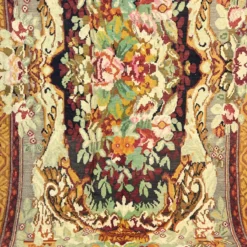 Vintage Bessarabian Rug: Hand-Woven Floral Wool